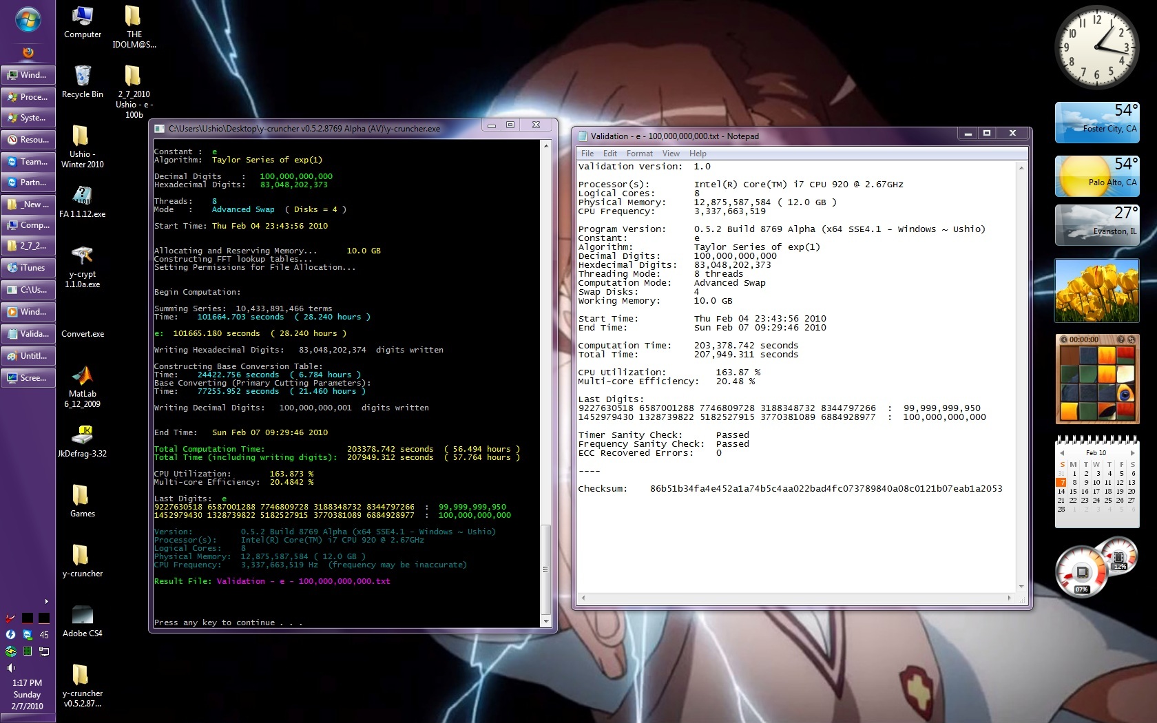 | February 7, 2010 | Alexander Yee | 100,000,000,000 | Compute: 57.8 hours (2.4 Days) |