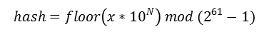 The "Digit Hash" is a redundancy check used by y-cruncher. For a number x and the first N digits after the decimal place, the hash is defined as:
