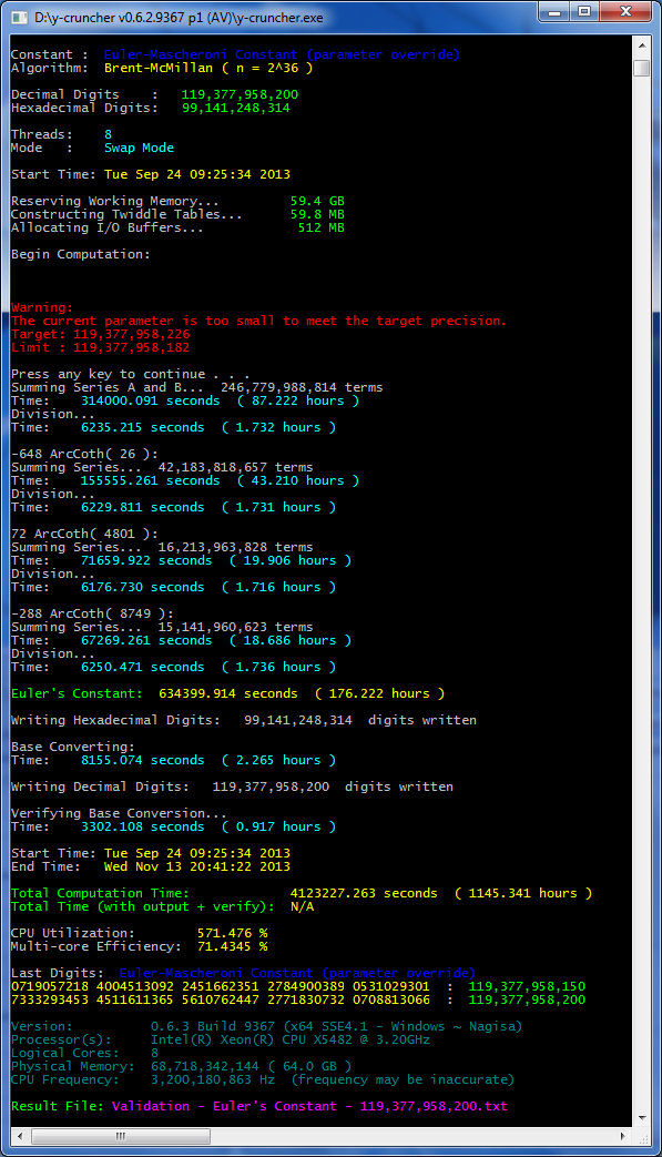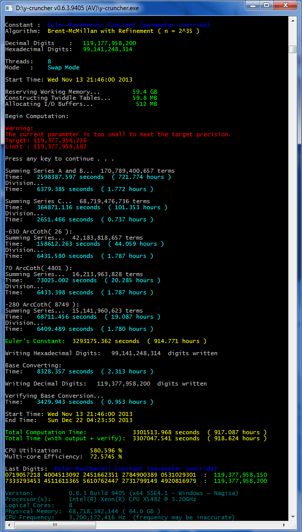 | January 8, 2010 | A. Yee | 5,000,000,000 | Compute: 17.5 hours (0.73 days) |