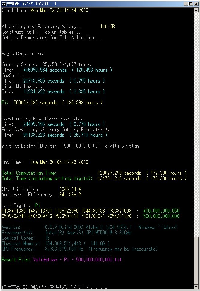 *This first world record for Pi was run entirely by Shigeru Kondo, but with a lot of support from me (Alexander Yee) to get it done. There was also a lot of back-and-forth testing between the two of us to stabilize the y-cruncher software before he could actually run the main computation.