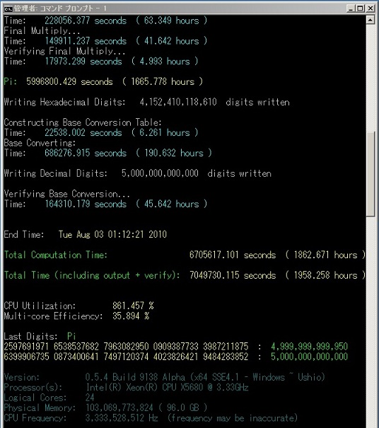 - Another 3.8 TB of disk was needed to store the compressed output of decimal and hexadecimal digits.