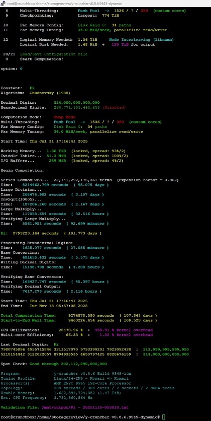 Would I recommend performing a Pi record without checkpointing? Absolutely not. This was actually Storage Review's 3rd attempt at a contiguous run. And while the computations from all 3 attempts finished correctly with a new Pi record, the first two attempts were hit by various hardware and software issues.