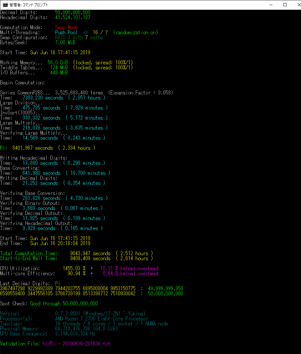 | 2.512 hours | v0.7.7 | 17-ZN1 | Yukina | Windows | Swap | 56.5 GB | Hiroyuki Oodaira (大平 寛之) | 1 | AMD Ryzen 7 2700 | 3.2 GHz | 64 GB | DDR4 | 7 | 7 x NVMe | ||