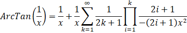 Unlike ArcCoth(x), y-cruncher has no native implementation of ArcTan(). It's not needed since nothing to date can touch Chudnovsky and Ramanujan's formulas.