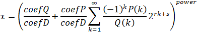 This provides access to y-cruncher's BinaryBBP Binary Splitting framework. This is an optimized special case of SeriesHypergeometric where Q(x) is a power-of-two multiple of R(x). All BBP-type formula with a base 2 radix will fall into this series type.