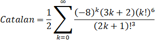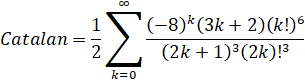 Adjacent term factorization is not always applicable. Catalan Guillera happens to be one of the few. But it does illustrate how slight modifications to a formula that's taken fresh out of a publication can lead to large differences in performance.