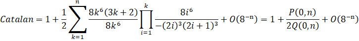 And voila! We have a Binary Splitting recursion for Guillera's formula for Catalan's Constant with a cost of 17.312.