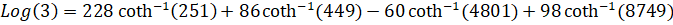 Starting from v0.6.1, y-cruncher is able to generate and utilize machin-like formulas for the log of any small integer.