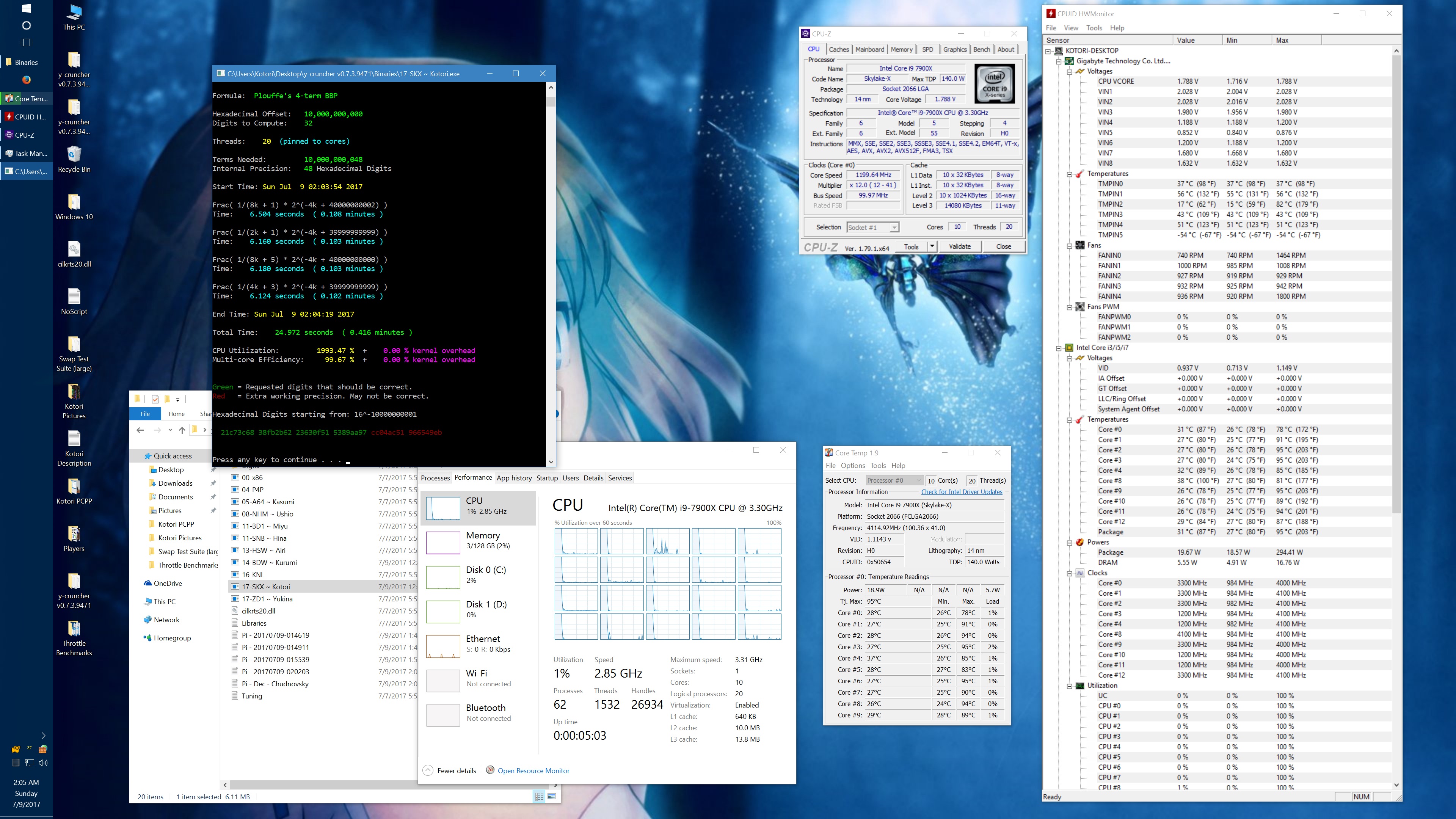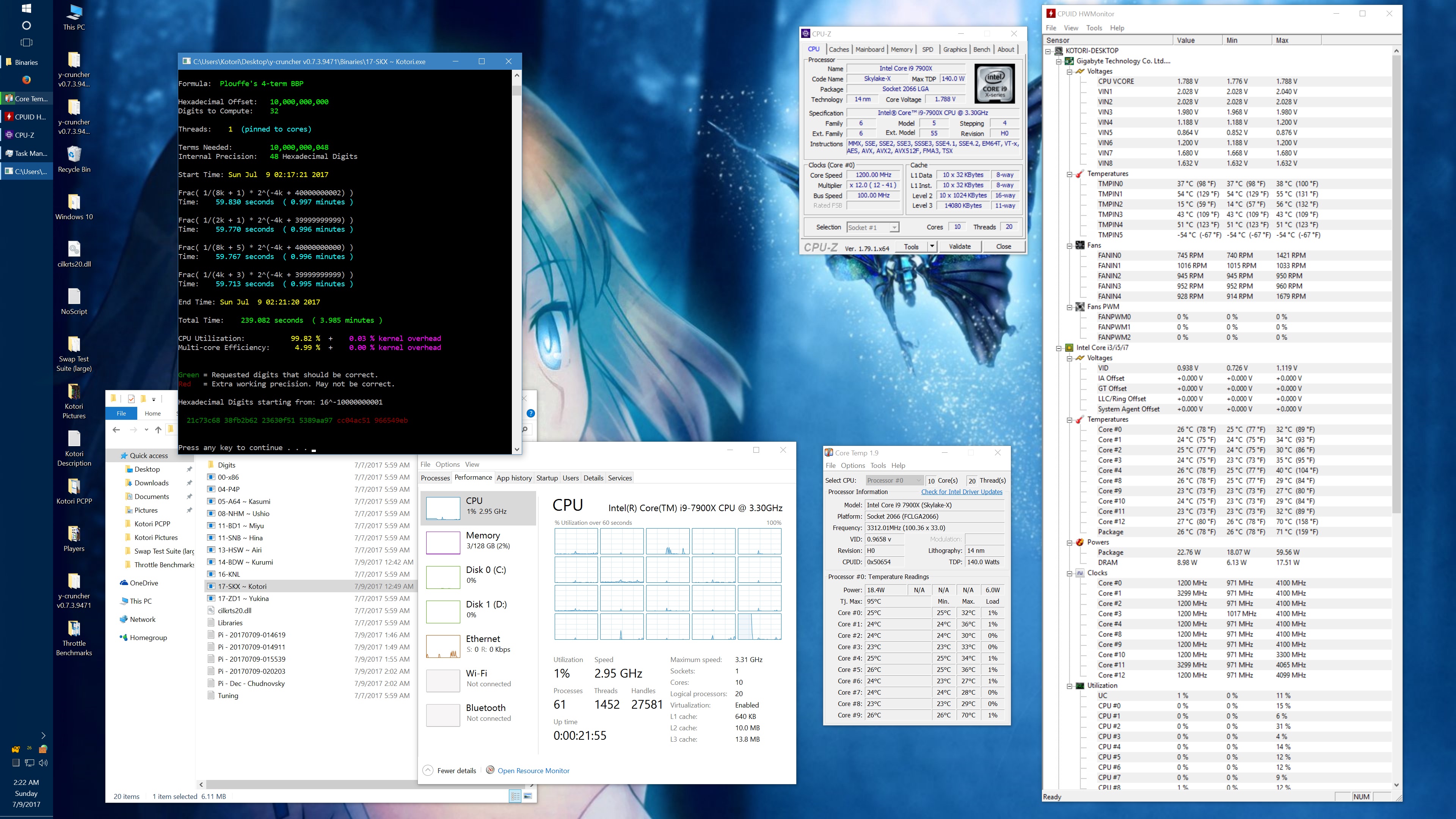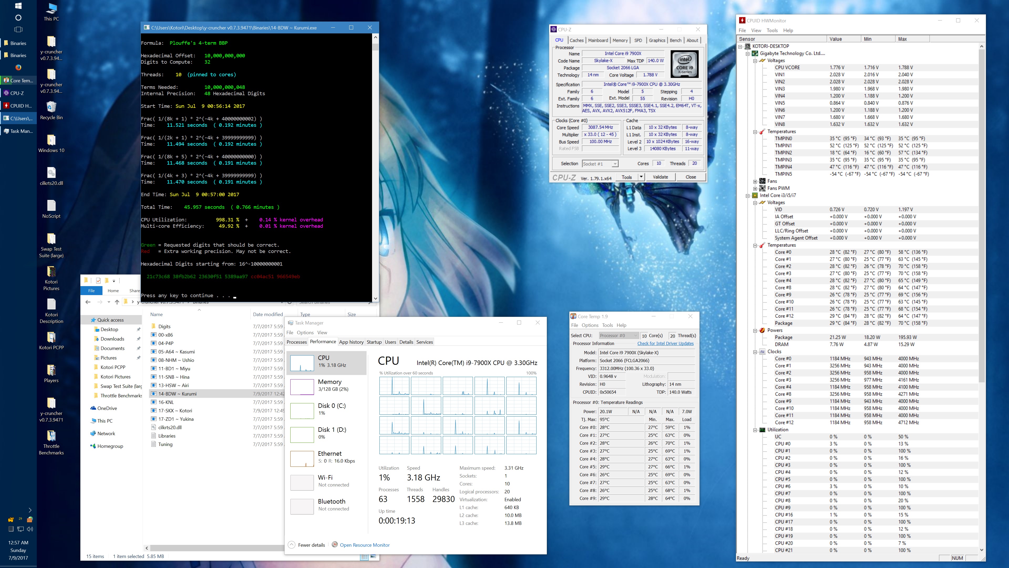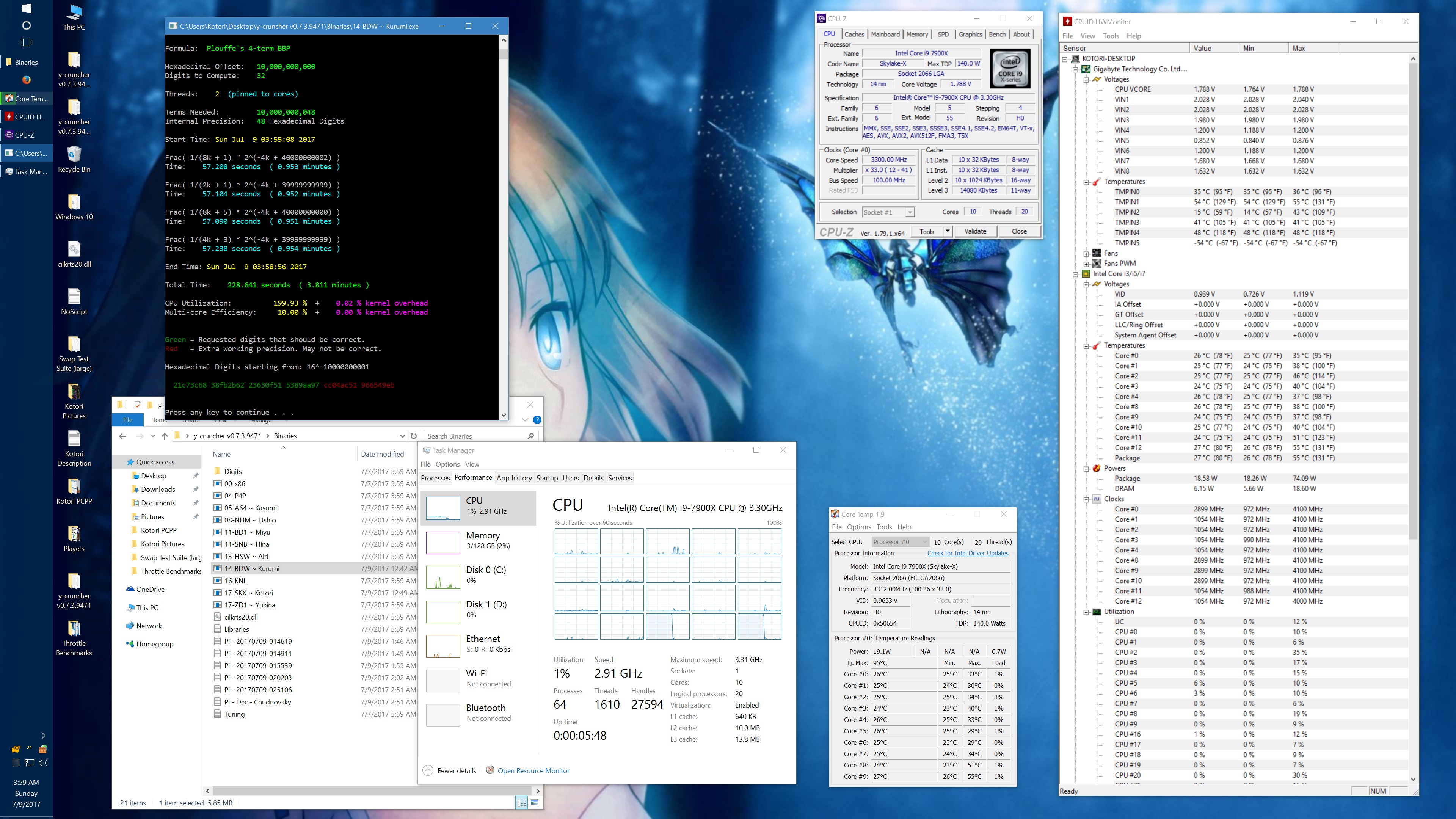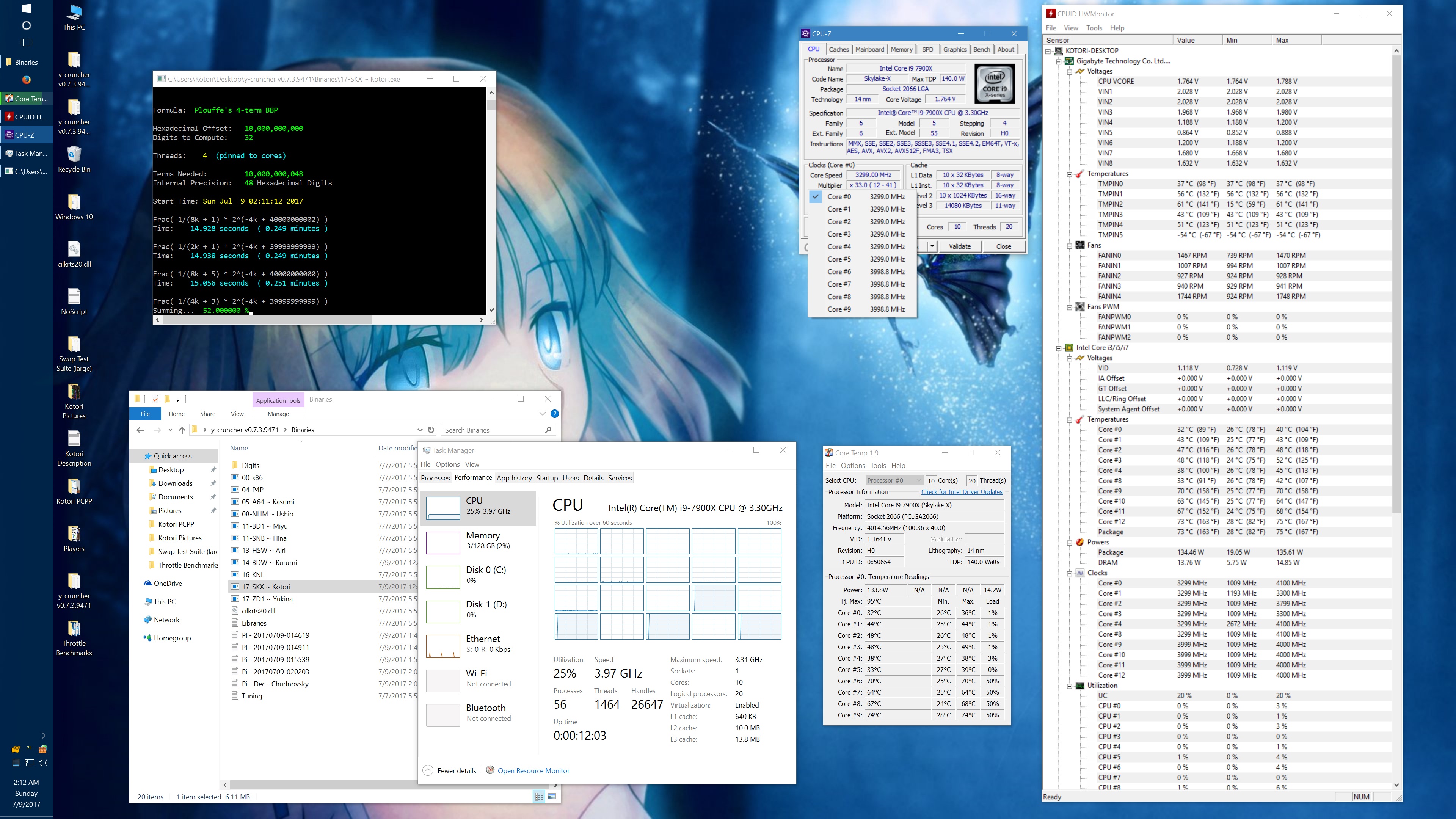 10 billion Hex-Digit of Pi - Plouffe's 4-term BBP Formula (y-cruncher v0.7.3) Core i9 7900X - Gigabyte AORUS Gaming 7 (BIOS F7a) |
