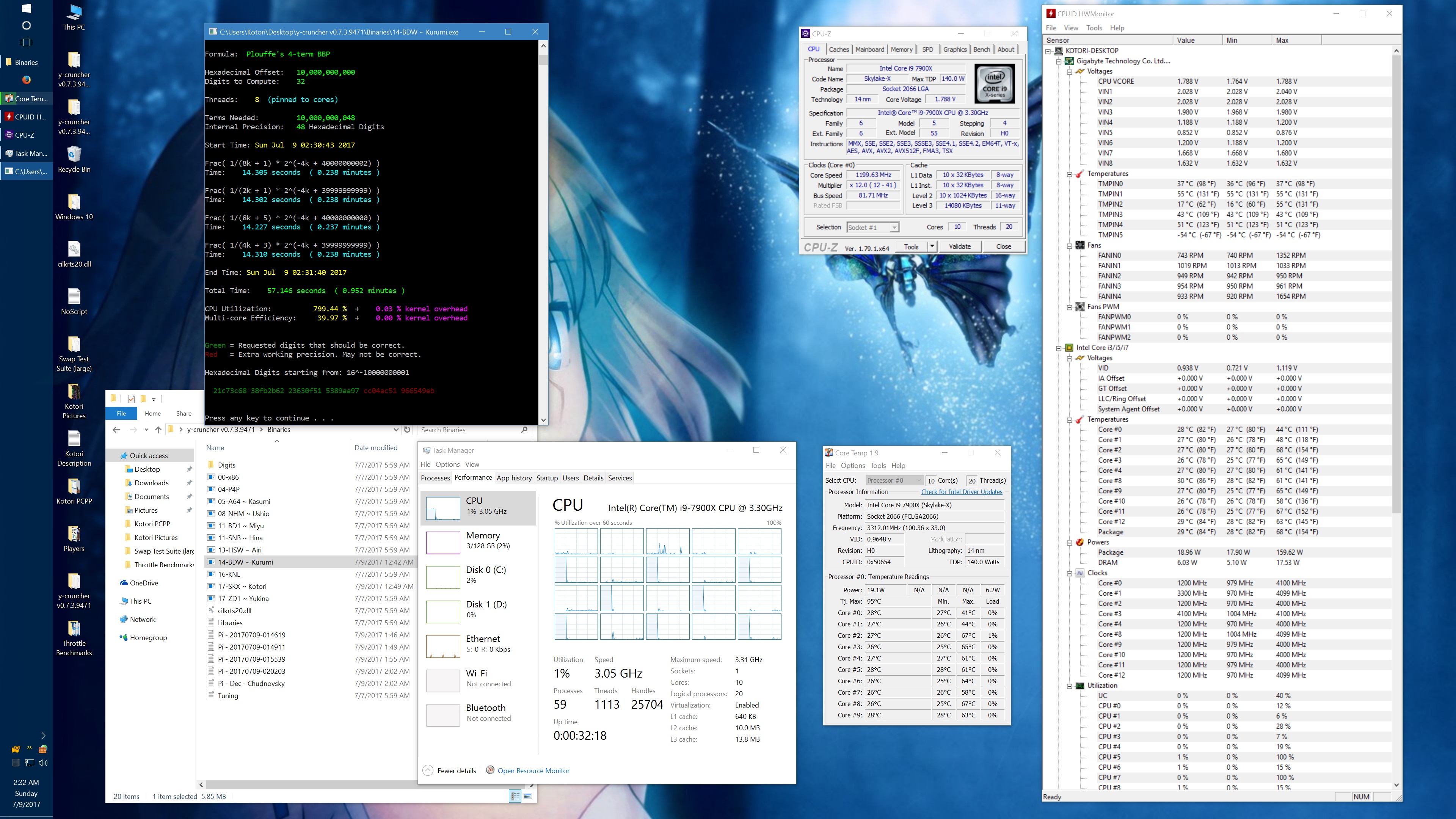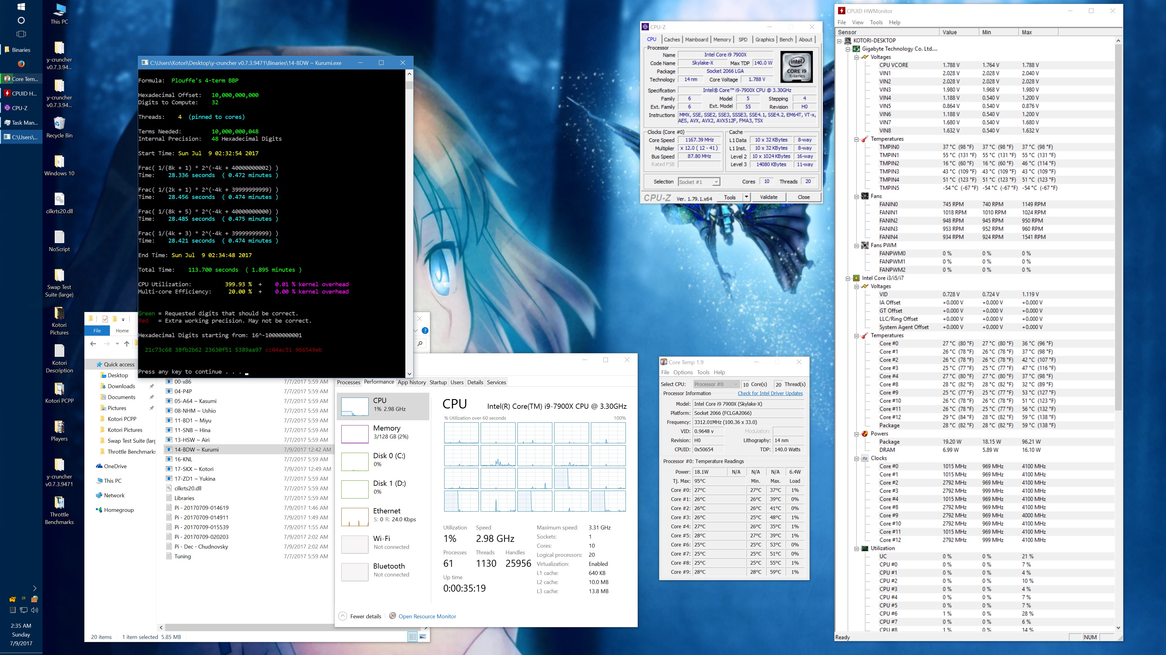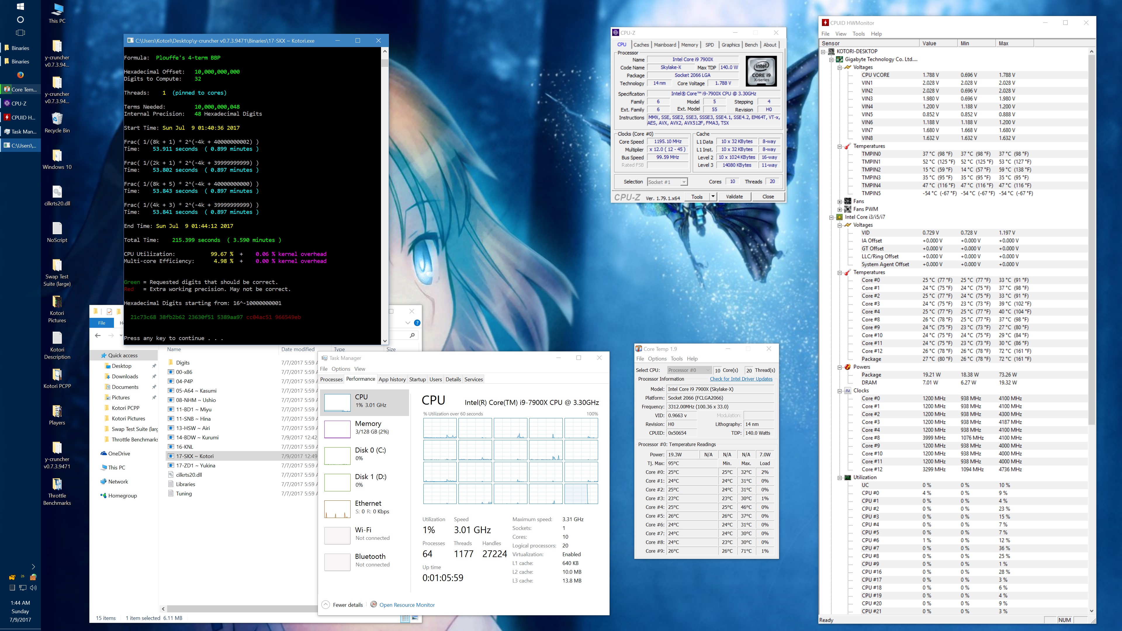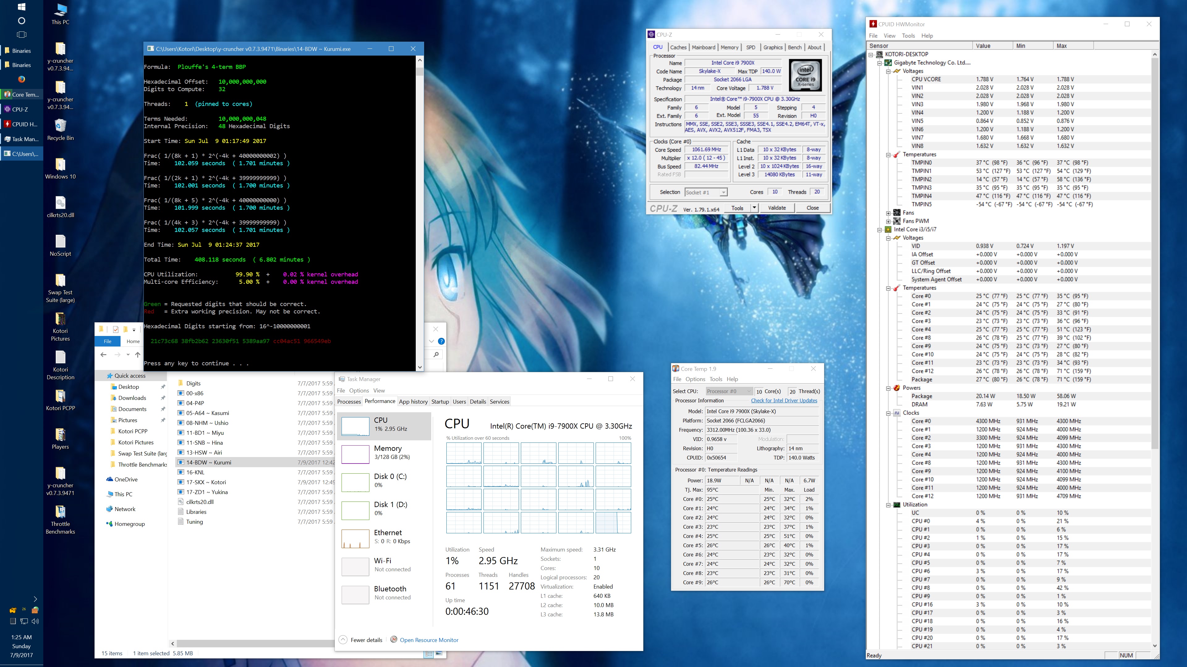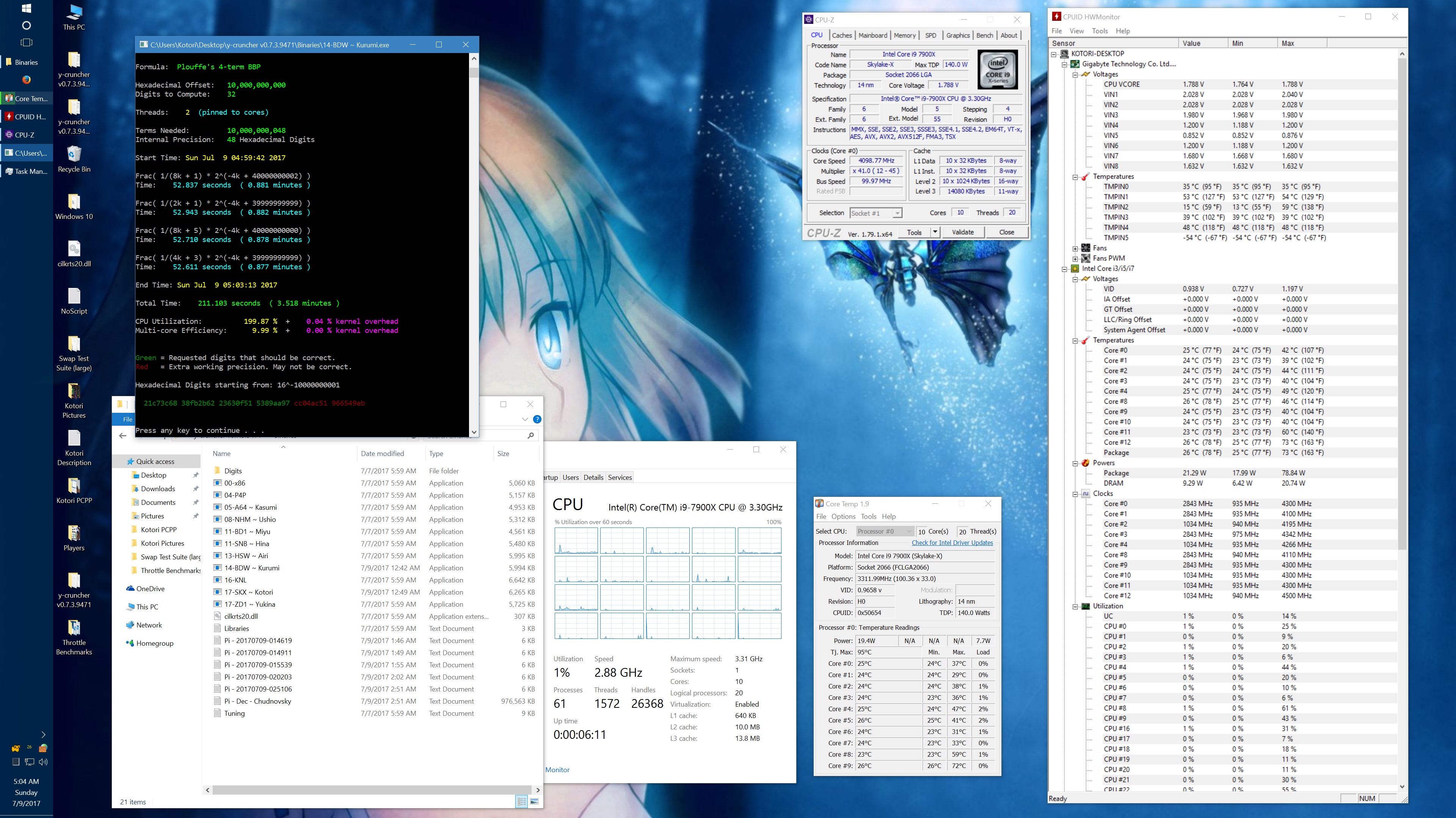 10 billion Hex-Digit of Pi - Plouffe's 4-term BBP Formula (y-cruncher v0.7.3) Core i9 7900X - Gigabyte AORUS Gaming 7 (BIOS F7a) |