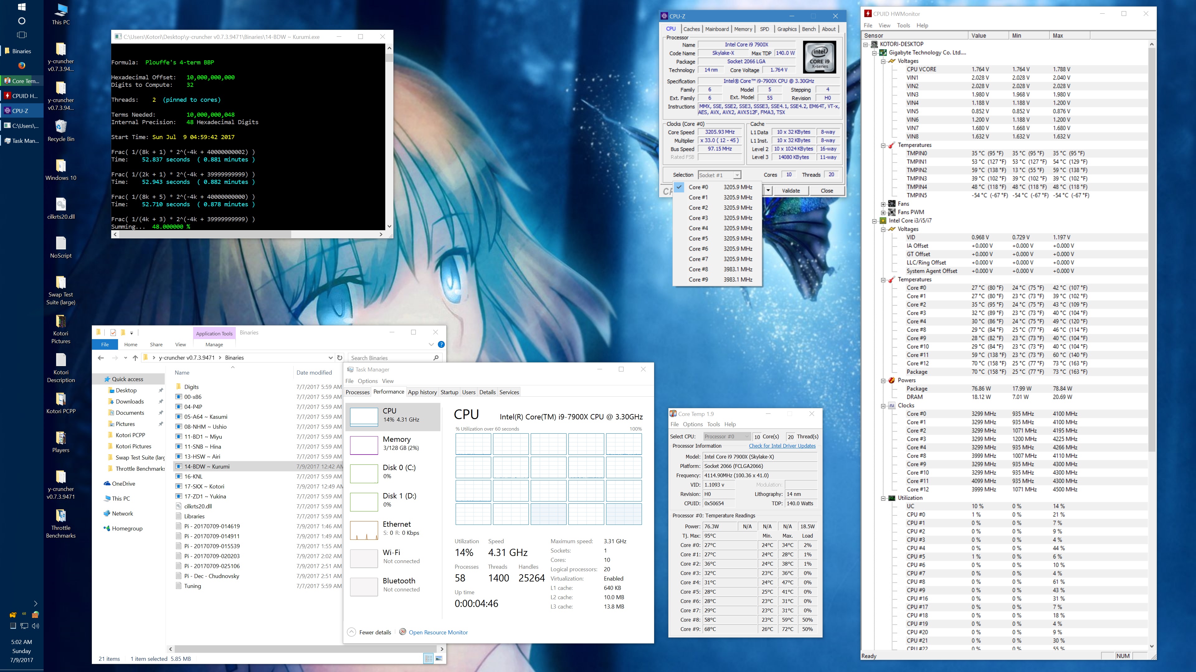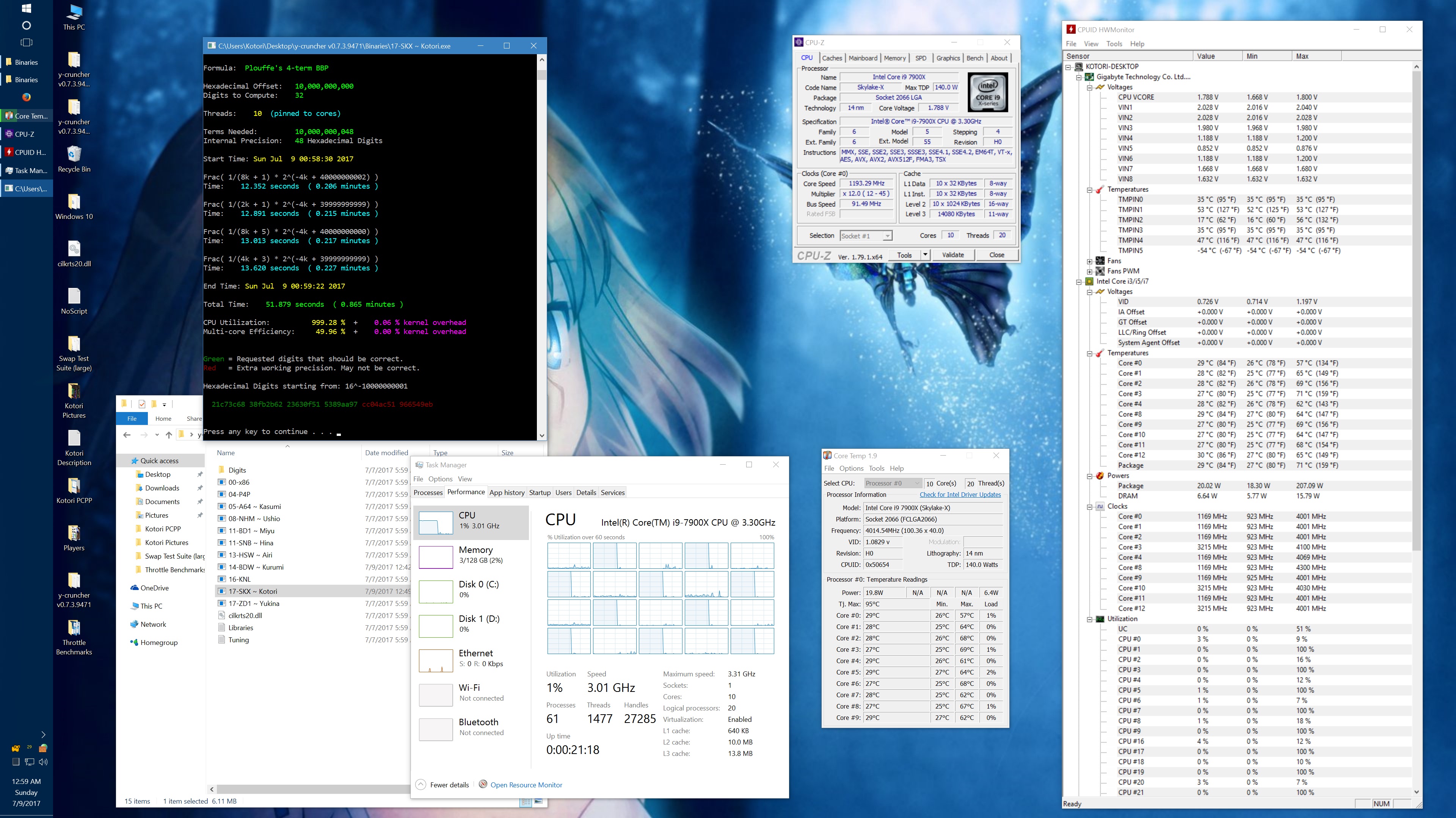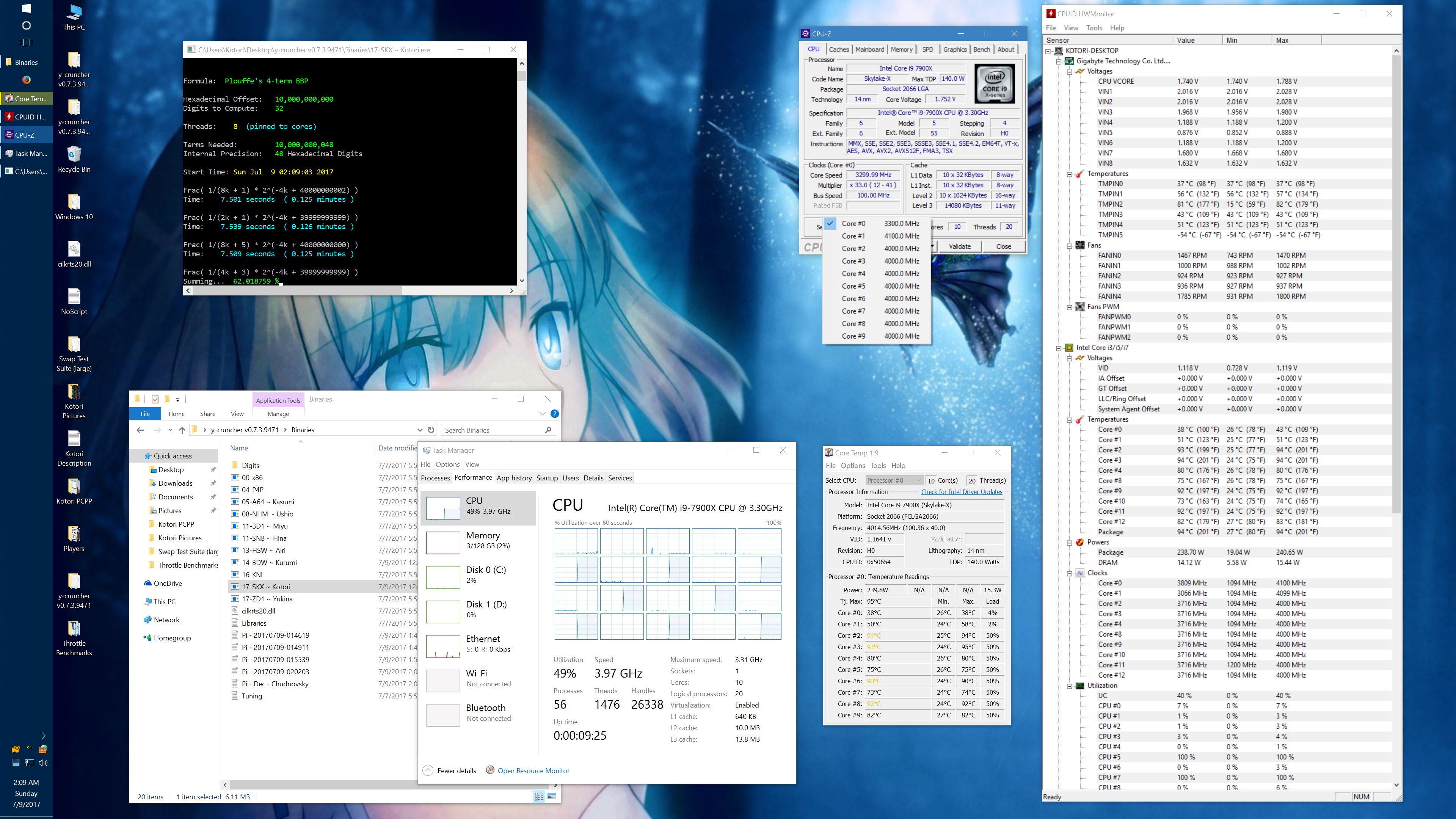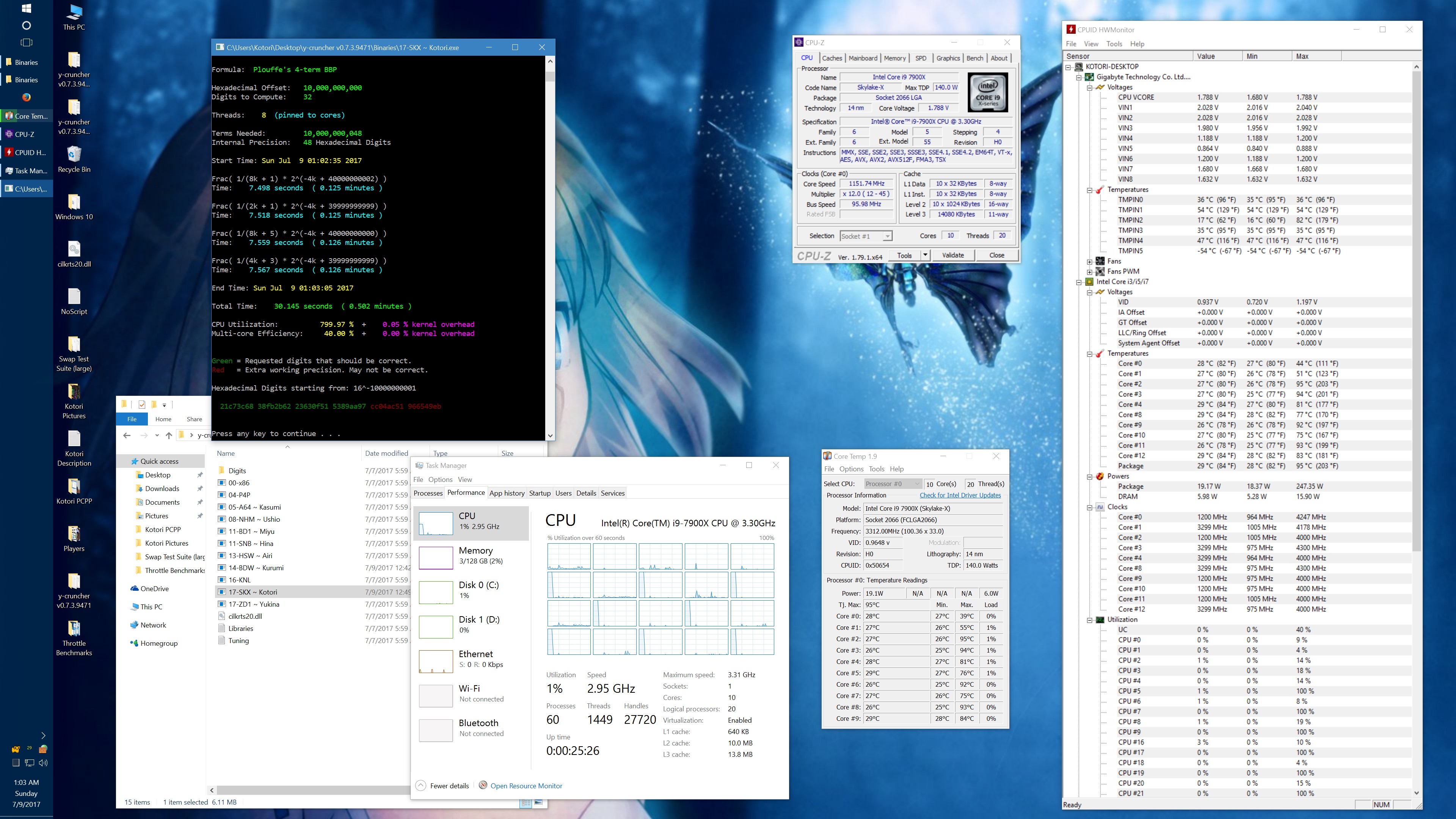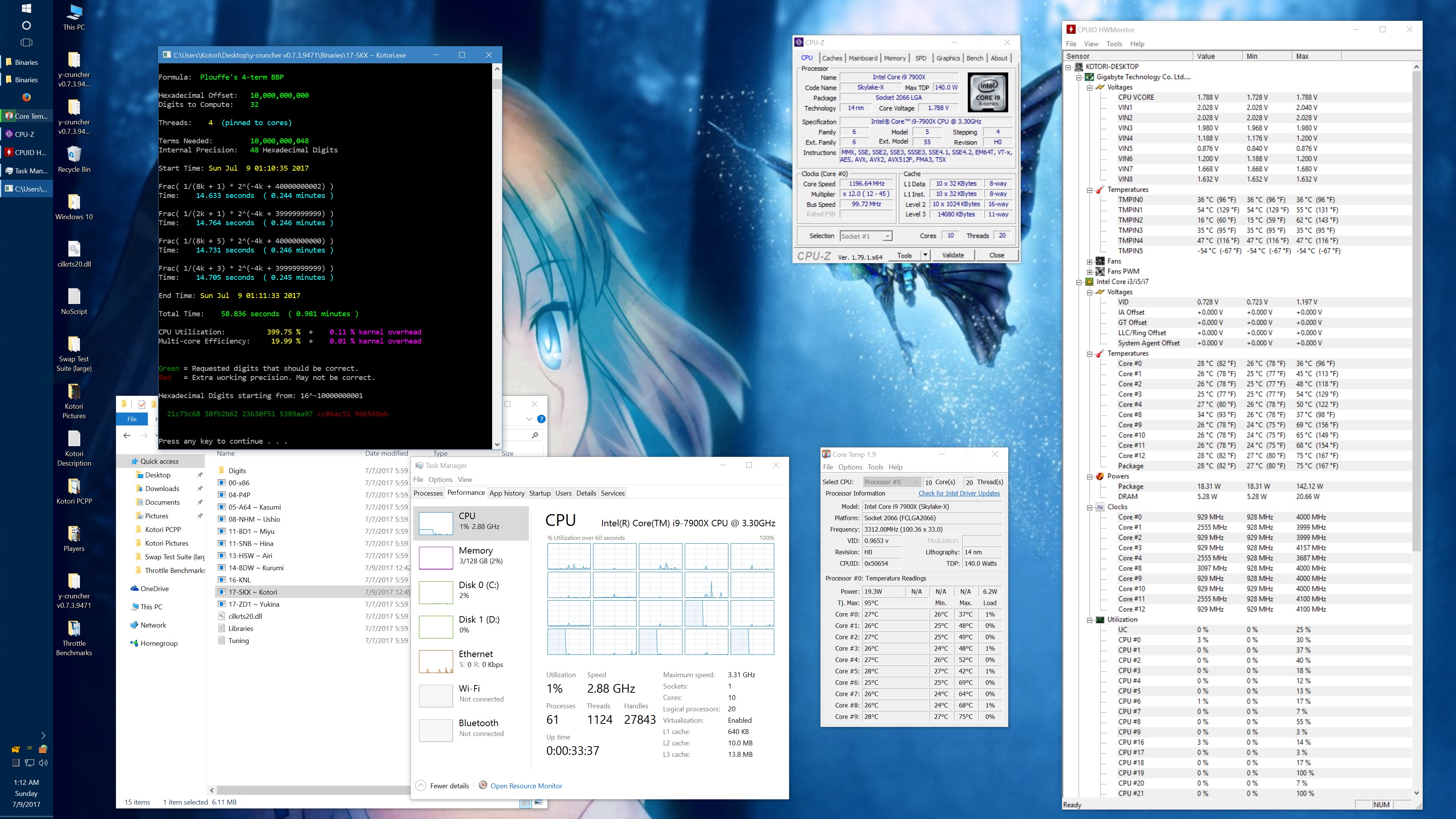 10 billion Hex-Digit of Pi - Plouffe's 4-term BBP Formula (y-cruncher v0.7.3) Core i9 7900X - Gigabyte AORUS Gaming 7 (BIOS F7a) |