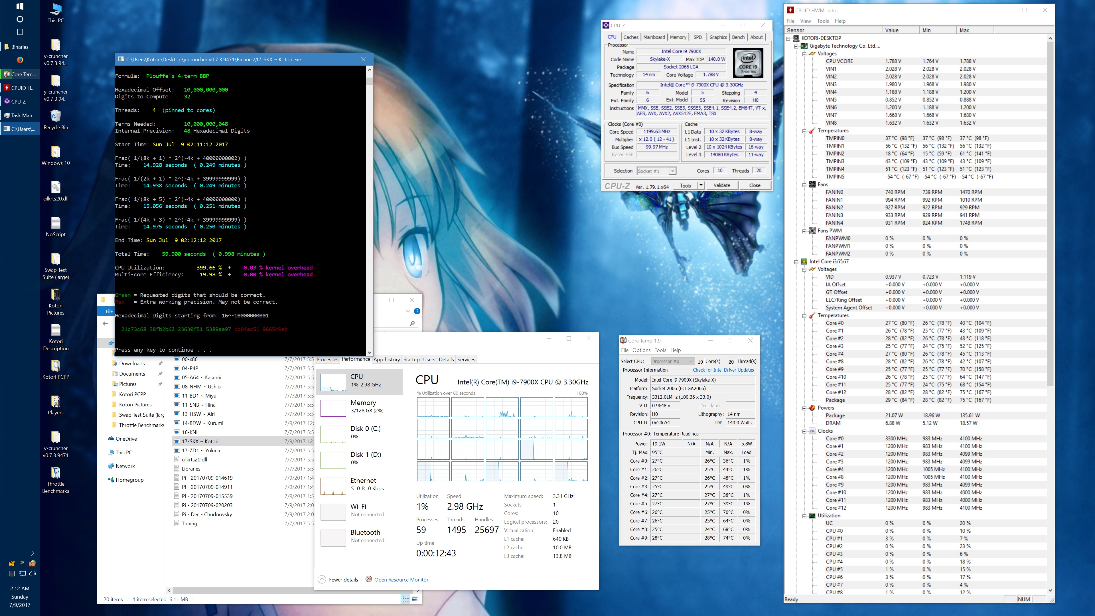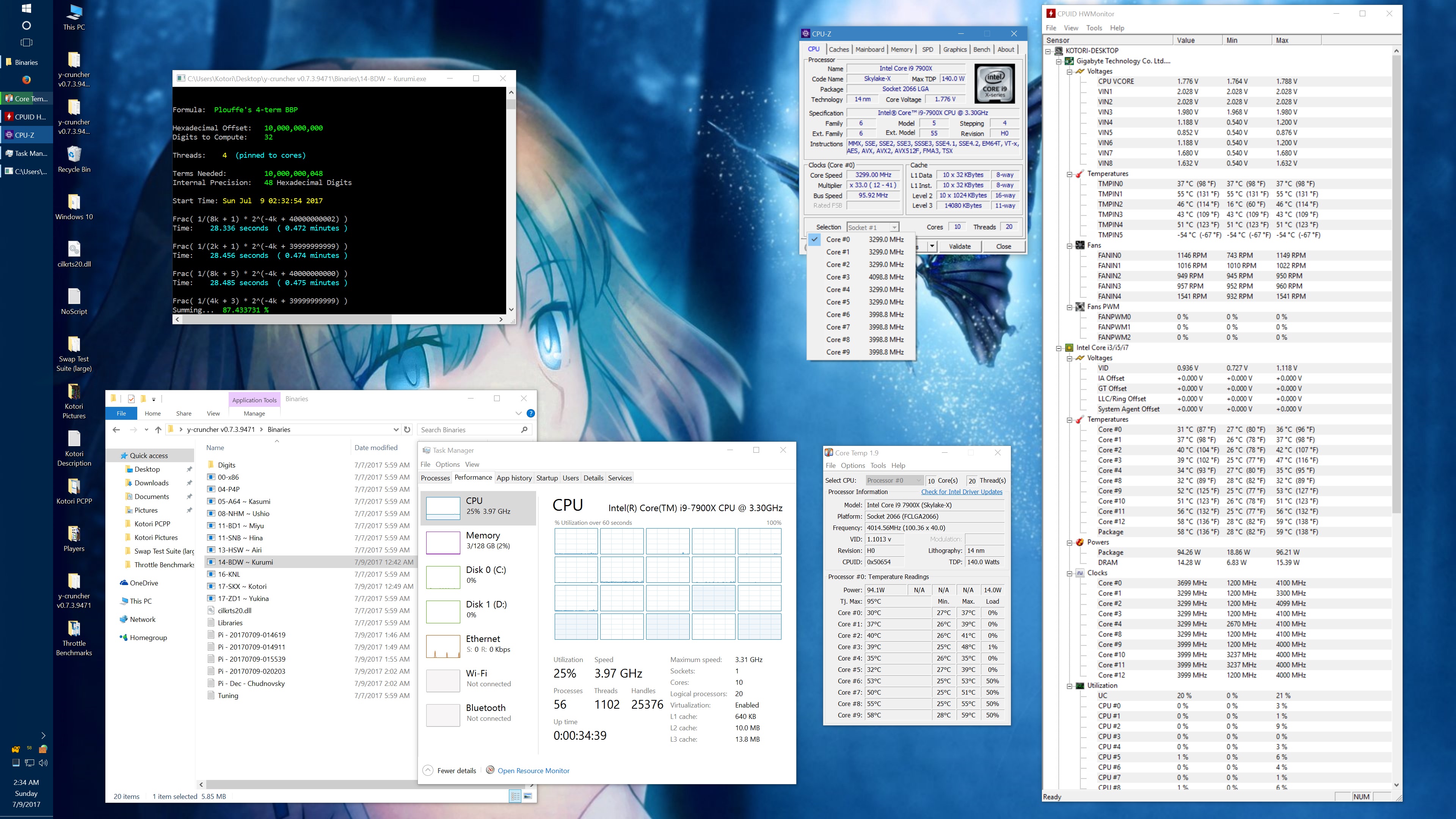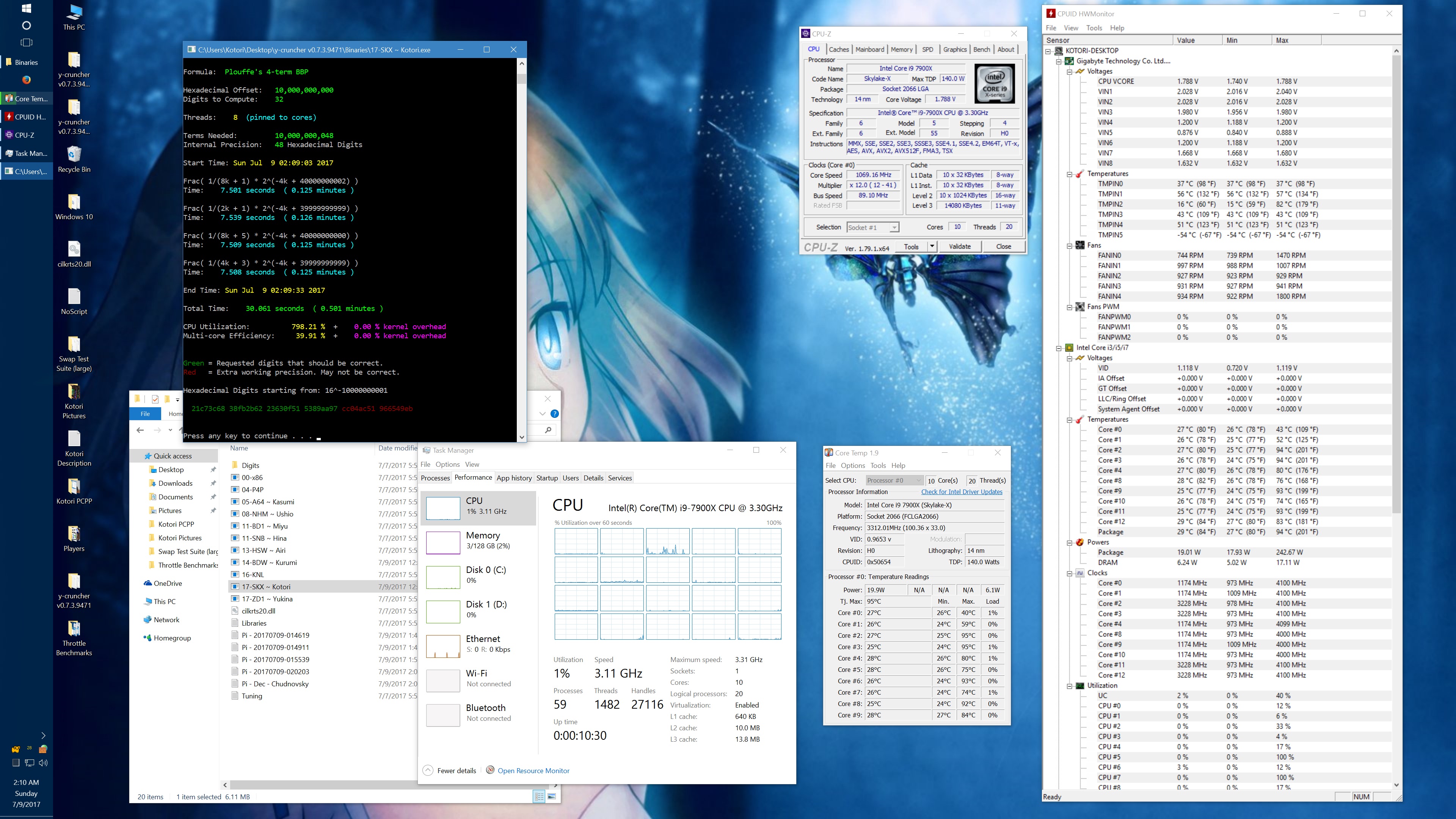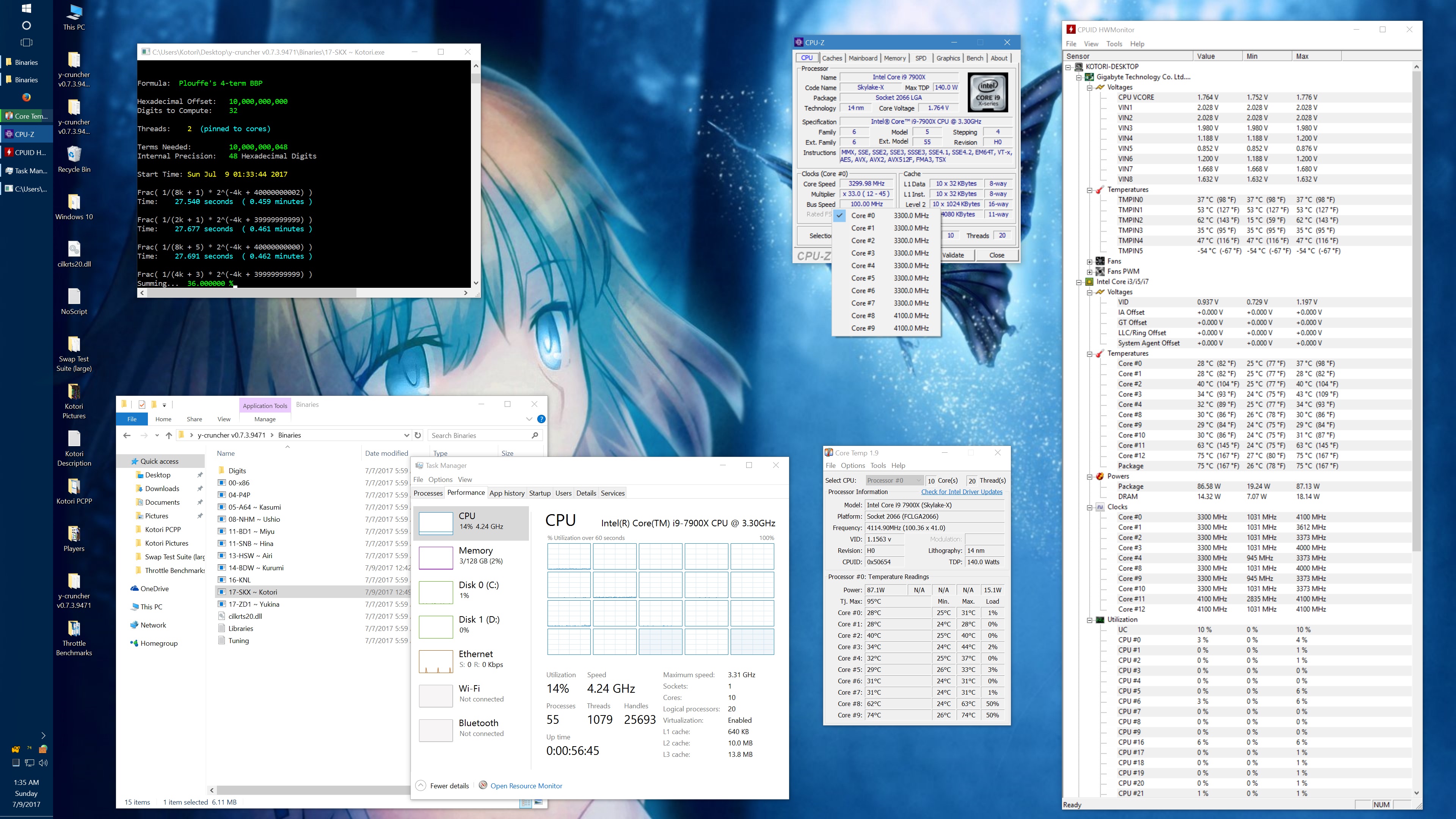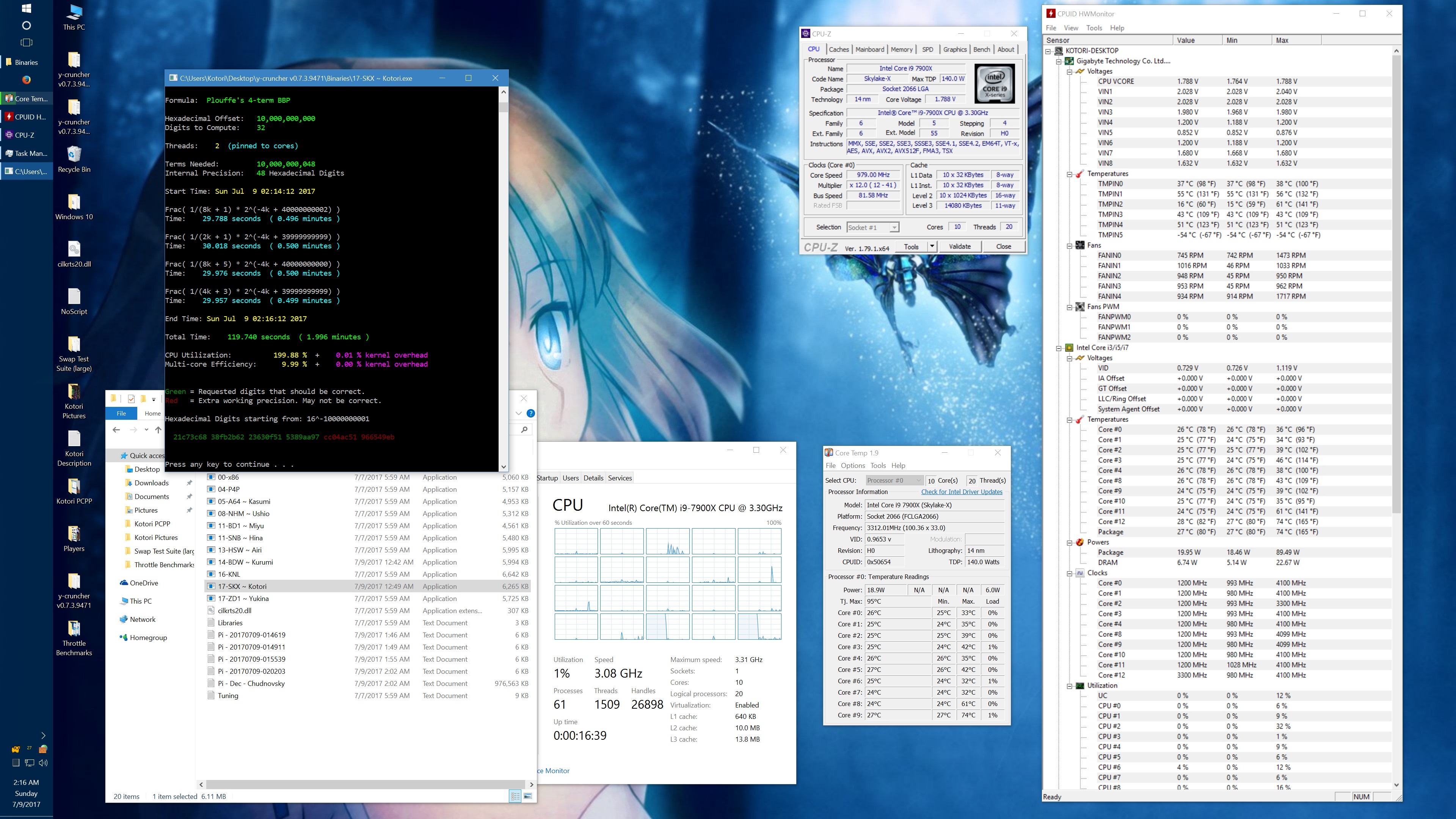 10 billion Hex-Digit of Pi - Plouffe's 4-term BBP Formula (y-cruncher v0.7.3) Core i9 7900X - Gigabyte AORUS Gaming 7 (BIOS F7a) |