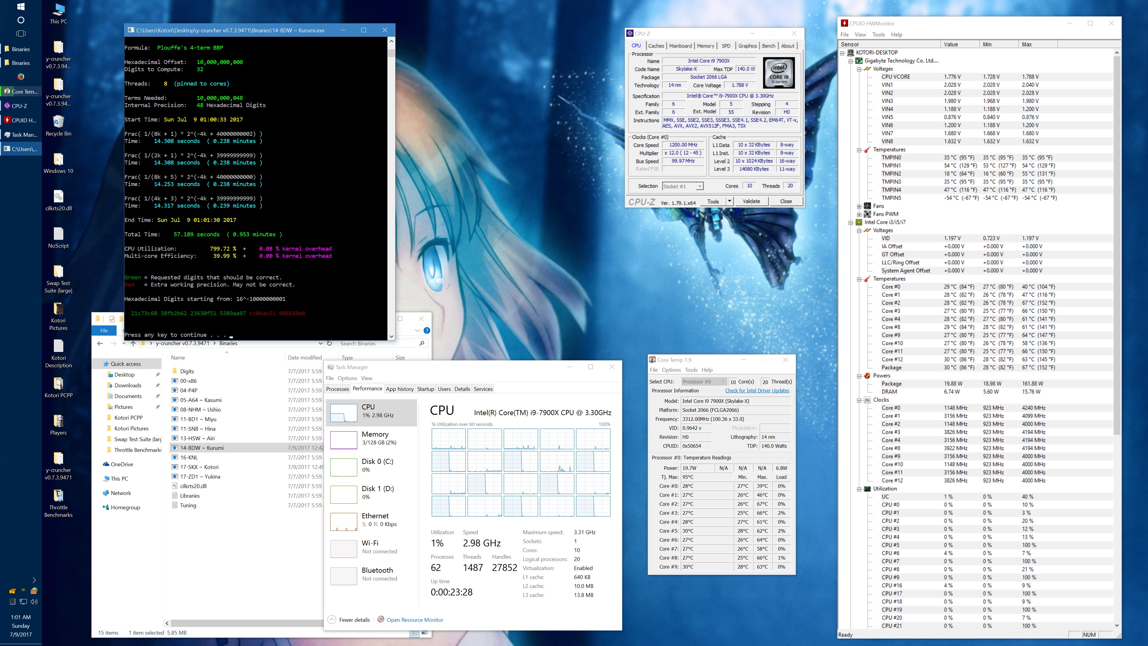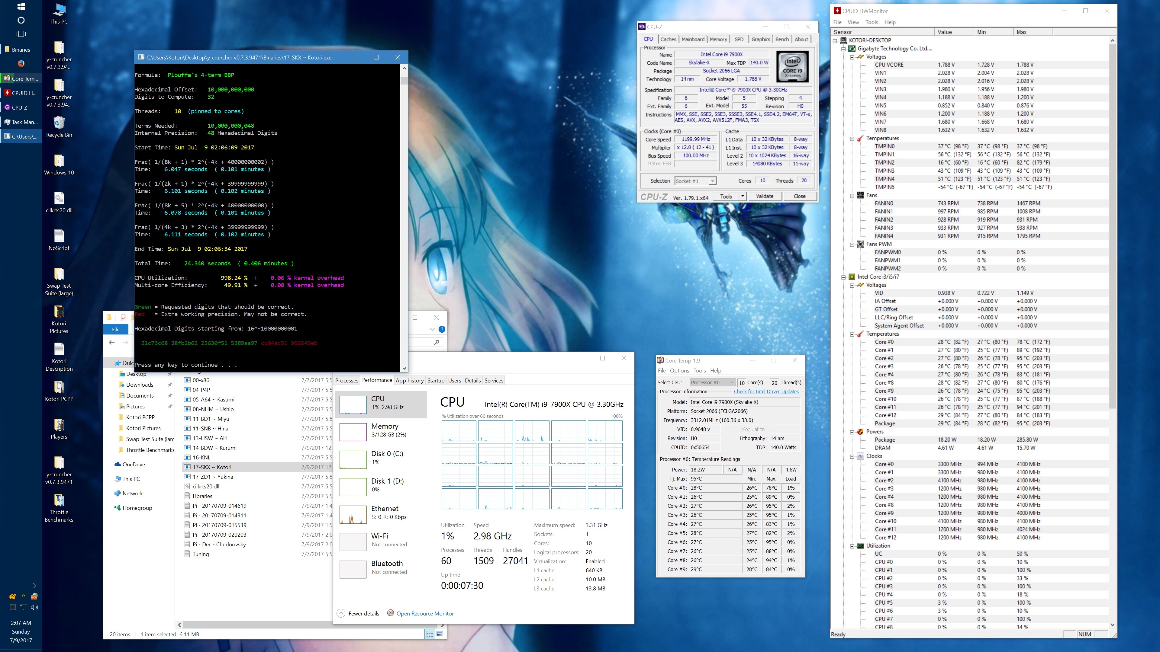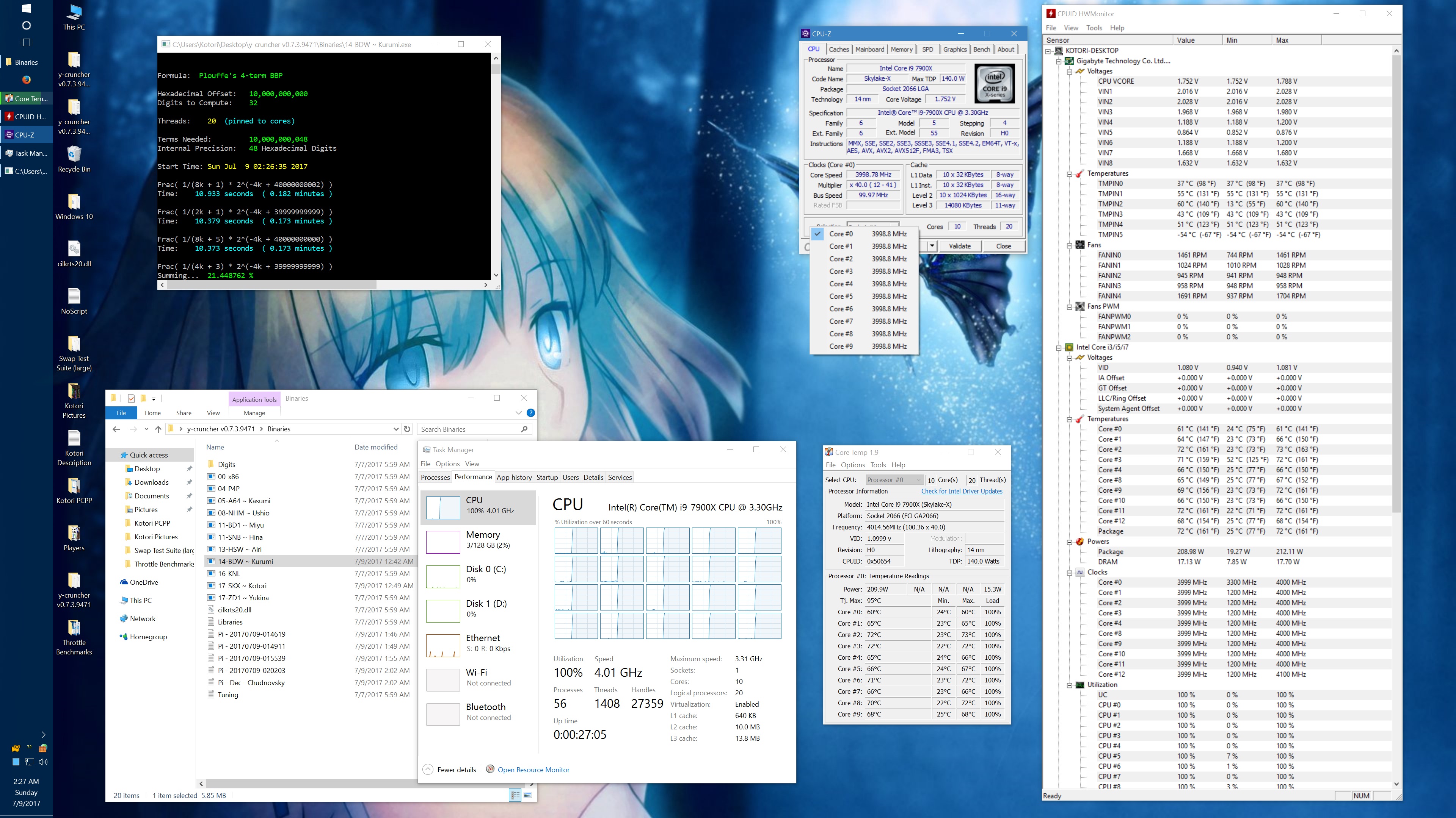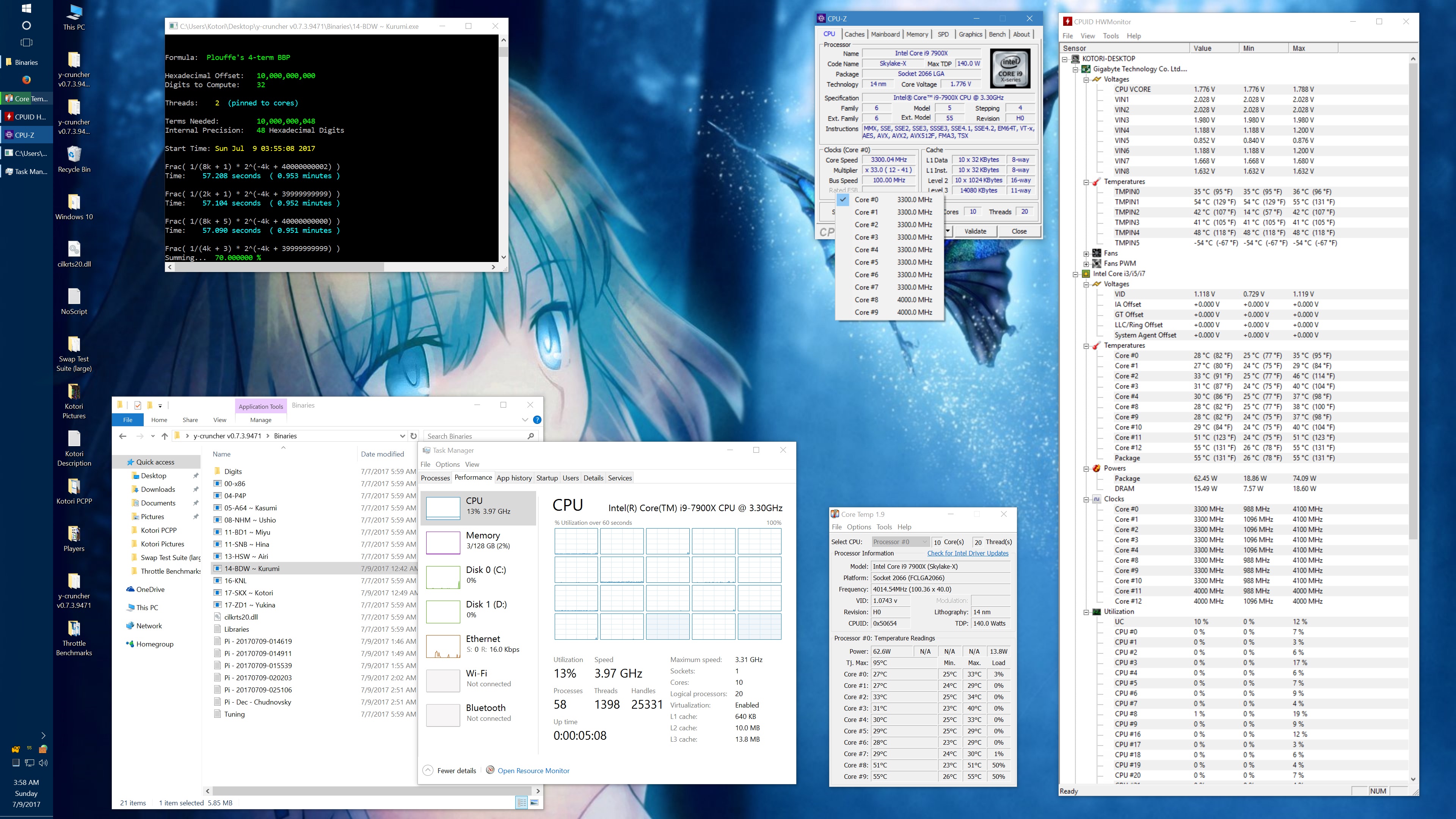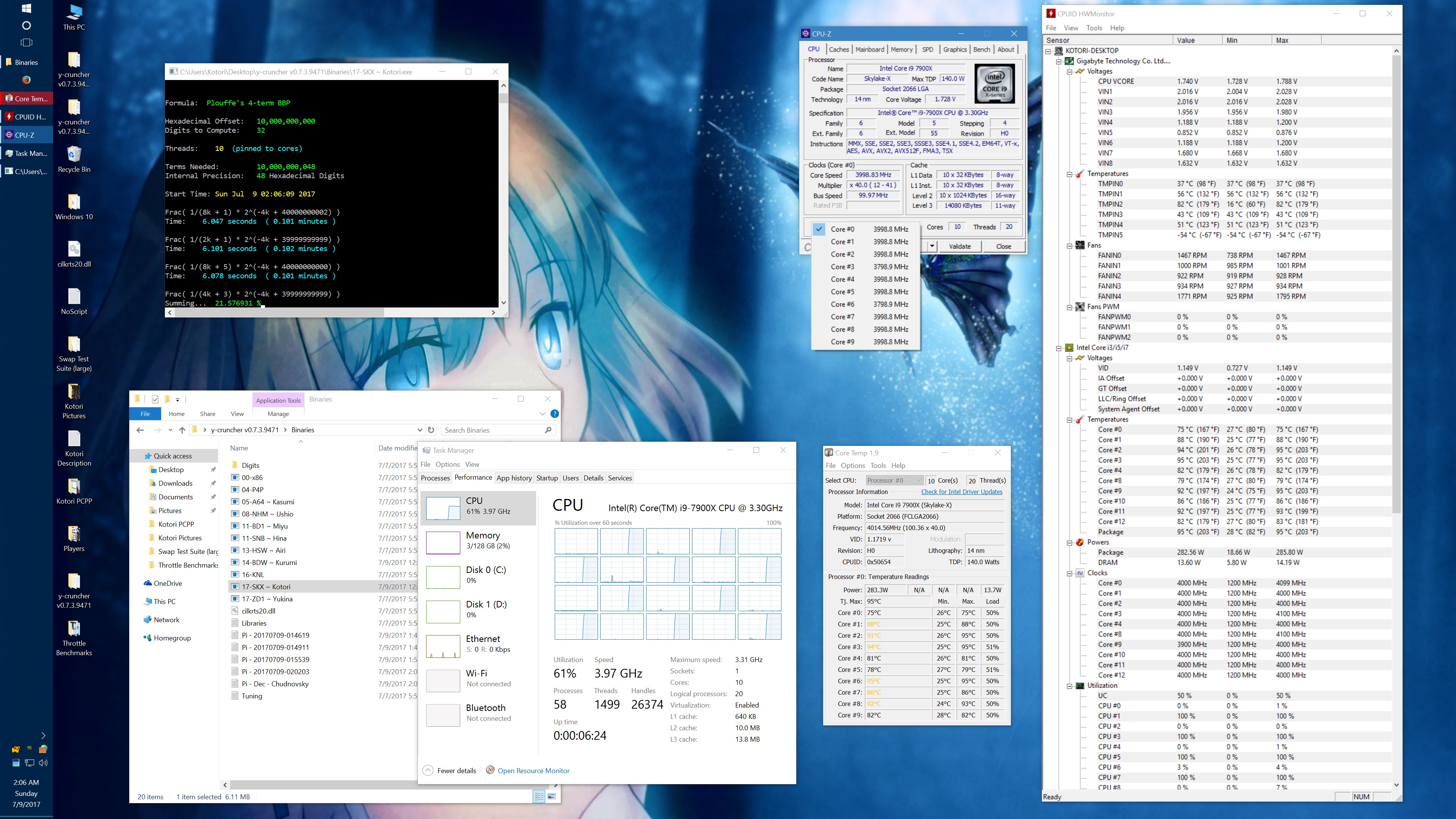 10 billion Hex-Digit of Pi - Plouffe's 4-term BBP Formula (y-cruncher v0.7.3) Core i9 7900X - Gigabyte AORUS Gaming 7 (BIOS F7a) |