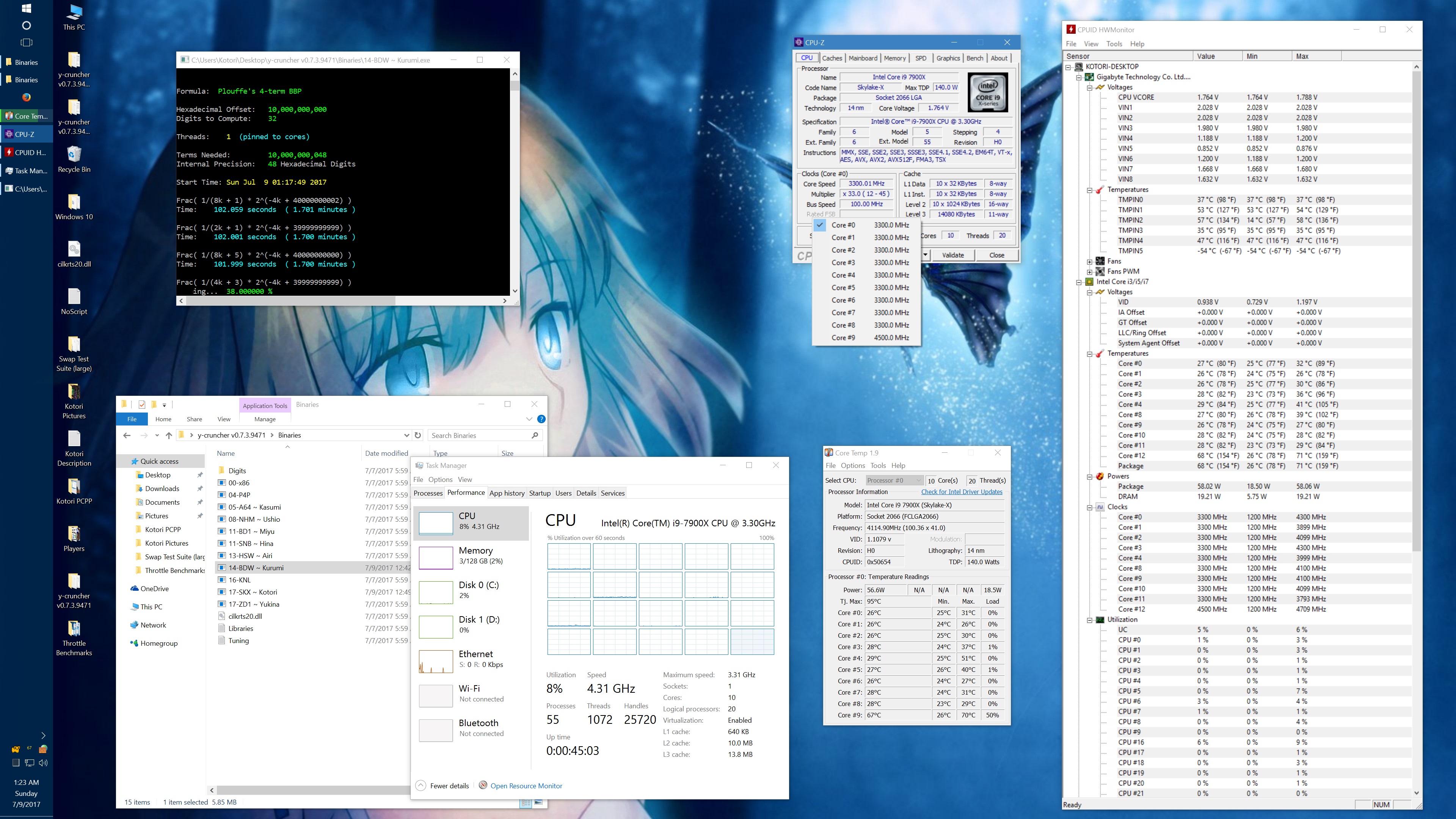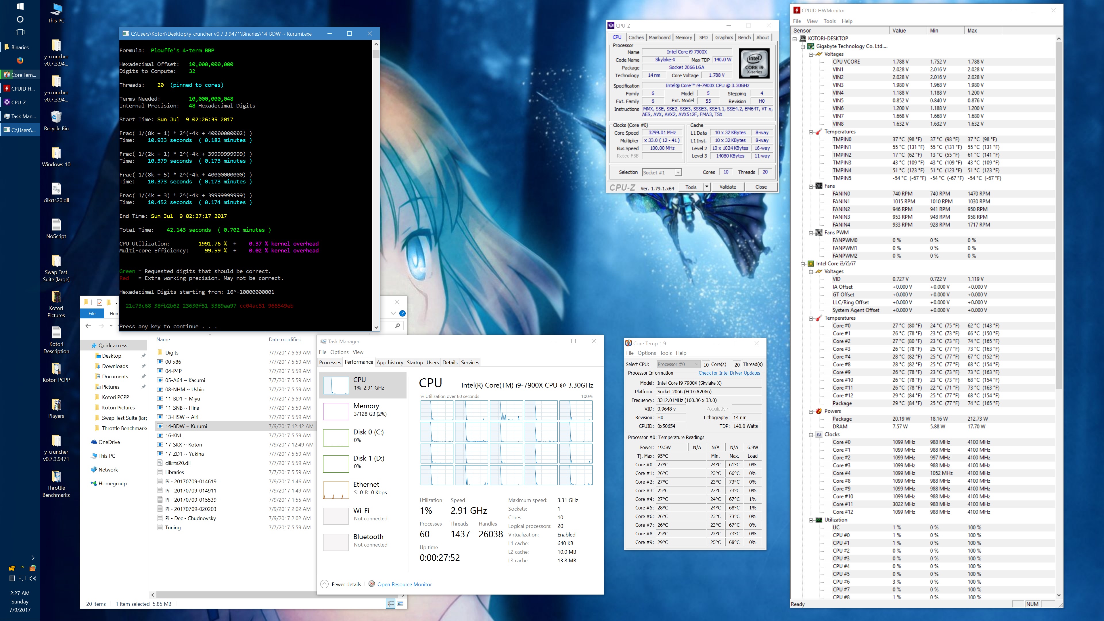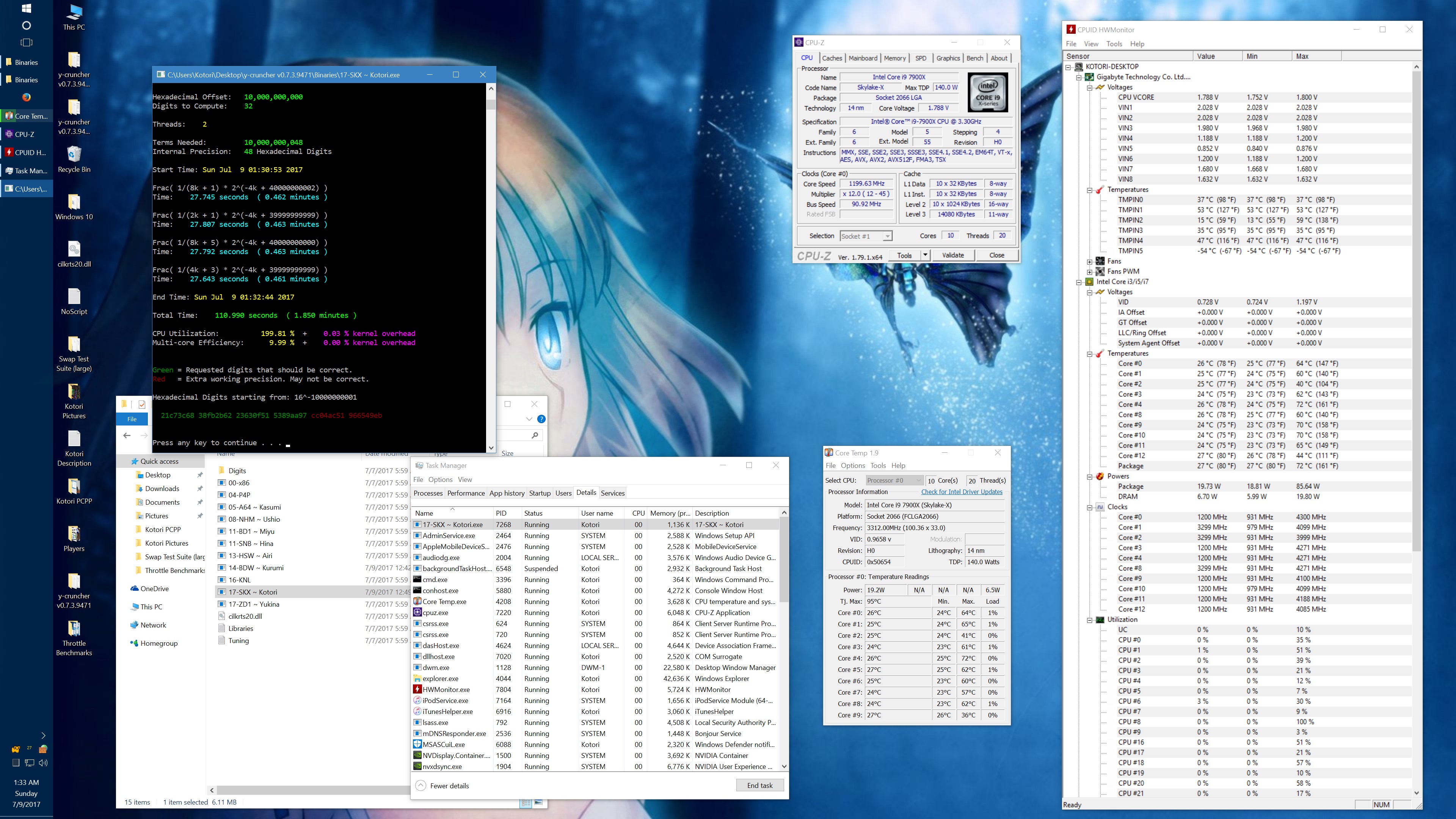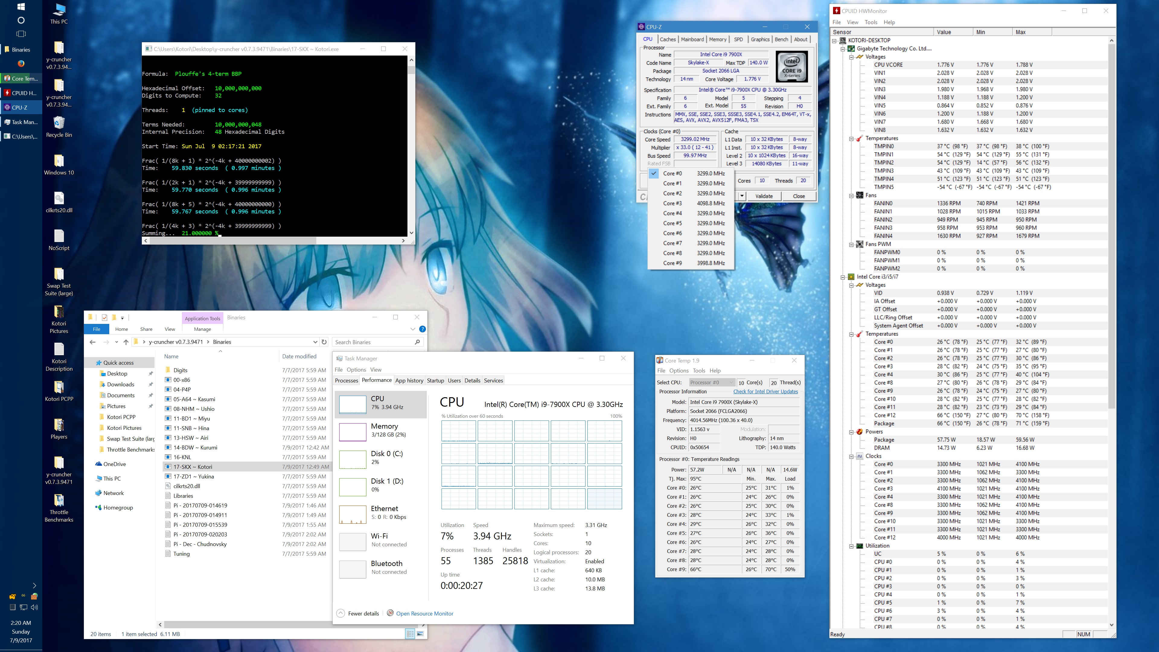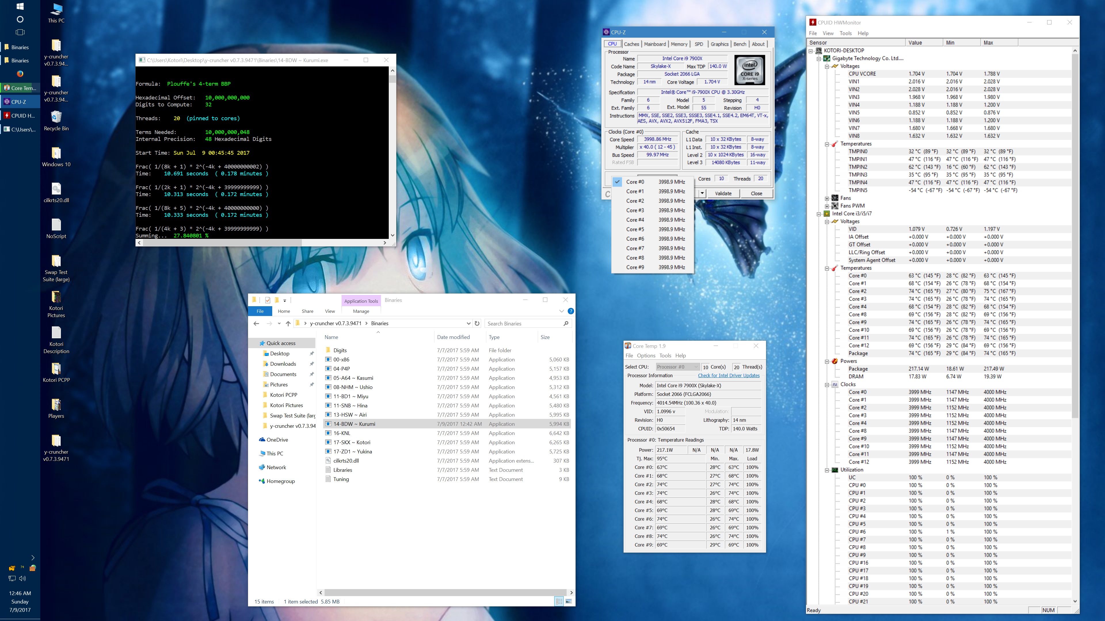 10 billion Hex-Digit of Pi - Plouffe's 4-term BBP Formula (y-cruncher v0.7.3) Core i9 7900X - Gigabyte AORUS Gaming 7 (BIOS F7a) |