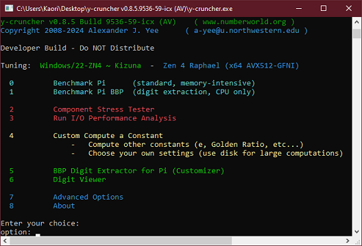 Optimizations for AMD's upcoming Zen5 processors has been released for y-cruncher v0.8.5. The latest build (9542) will a new binary "24-ZN5 ~ Komari".