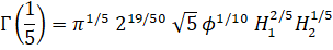 But what about Gamma(1/5)? Vidunas (2008) gives the following formula:
