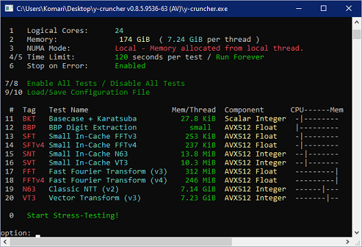 3. Picked up fixes for 2 of the y-cruncher bugs discovered during the 105 trillion digit run. (the N63 bug + error handling crash)